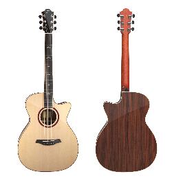 | Grand Auditorium Cutaway Decke: Sitka Fichte - AAA massiv, Boden & Zargen: Indian Rosewood - AAA massiv, Hals: Mahagoni, Griffbrett: Ebenholz, Binding: American flamed maple, Purfling: Redheart with black & white contrast line, Rosette: Solid redheart ring with black & white line, Mensur: 650 mm, Sattelbreite: 45 mm (auf Anfrage 43mm und 48mm erhältlich), Pickguard: Anti-scratch transparent, Lackierung: Decke, Boden, Zargen, Headstock: Full-Pore High-Gloss Finish, Hals: Full-Pore Smooth-Slide Satin Finish,, Pickup: L.R.Baggs Stage Pro Anthem, inklusive Furch Hiscox Hard Shell Case |